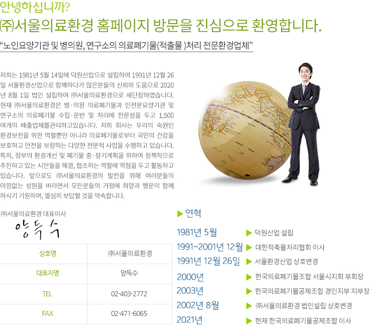 상호명 (주)서울의료환경 | 대표자 양득수 | 사업자등록번호 689-88-01722 | TEL 02-403-2772 | FAX 02-408-1218 | ADD 서울특별시 강동구 가래여울길 12, 2층(강일동)
